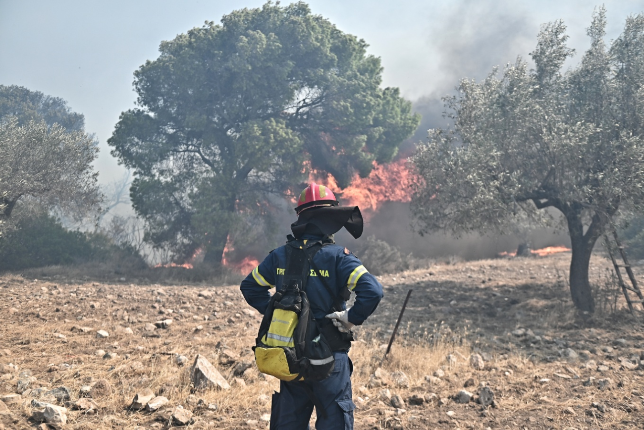 «Δυστυχώς τα Canadair λόγω των ισχυρών ανέμων – είναι και ρέμα εδώ – δεν μπορούν να επιχειρήσουν, ό,τι γίνεται από τα ελικόπτερα».