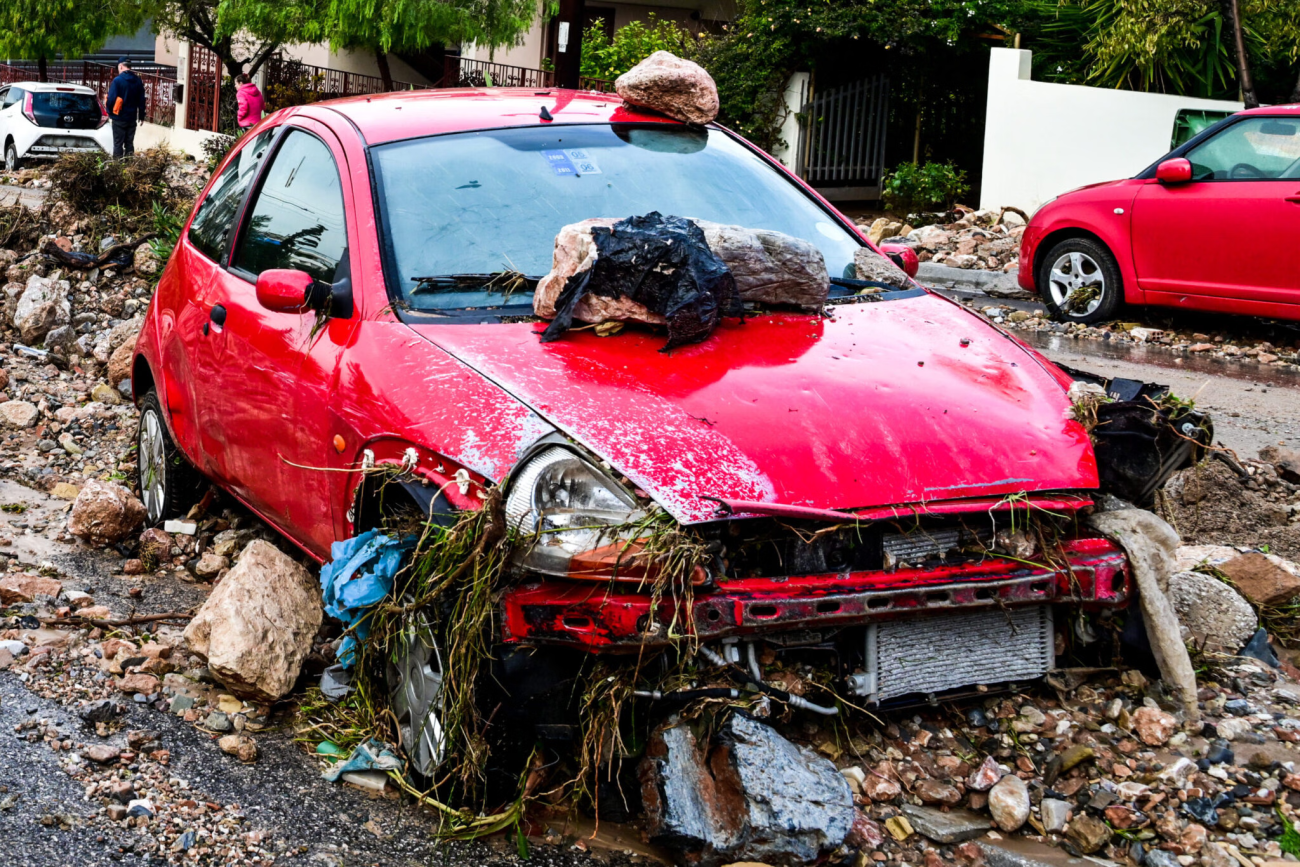Η επόμενη ημέρα στην περιοχή αποκαλύπτει το μέγεθος της καταστροφής που άφησε πίσω της η σφοδρή καταιγίδα.