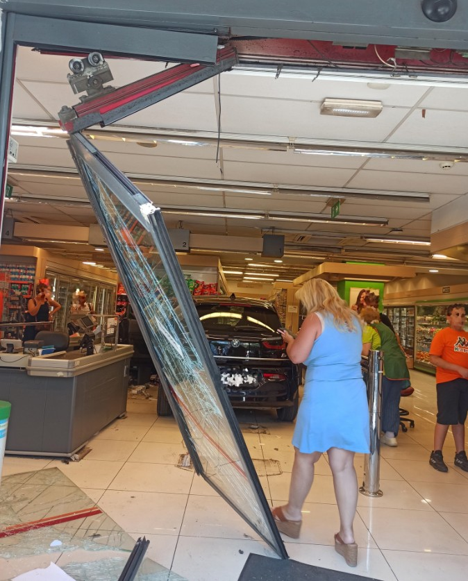 Σύμφωνα με τις πρώτες πληροφορίες, το όχημα βγήκε ξαφνικά εκτός ελέγχου, υπό αδιευκρίνιστες μέχρι στιγμής συνθήκες, και κατέληξε να πέσει με δύναμη πάνω στο κατάστημα τροφίμων.