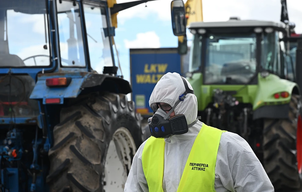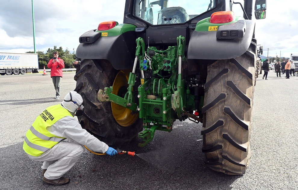 Για προληπτικούς λόγους και σε συνεννόηση με τους αγρότες, η ΕΛ.ΑΣ. εγκατέστησε δύο σημεία απολύμανσης στα διόδια Αφιδνών και Ελευσίνας, λόγω της ευλογιάς των προβάτων, κατά τη διέλευση των τρακτέρ.