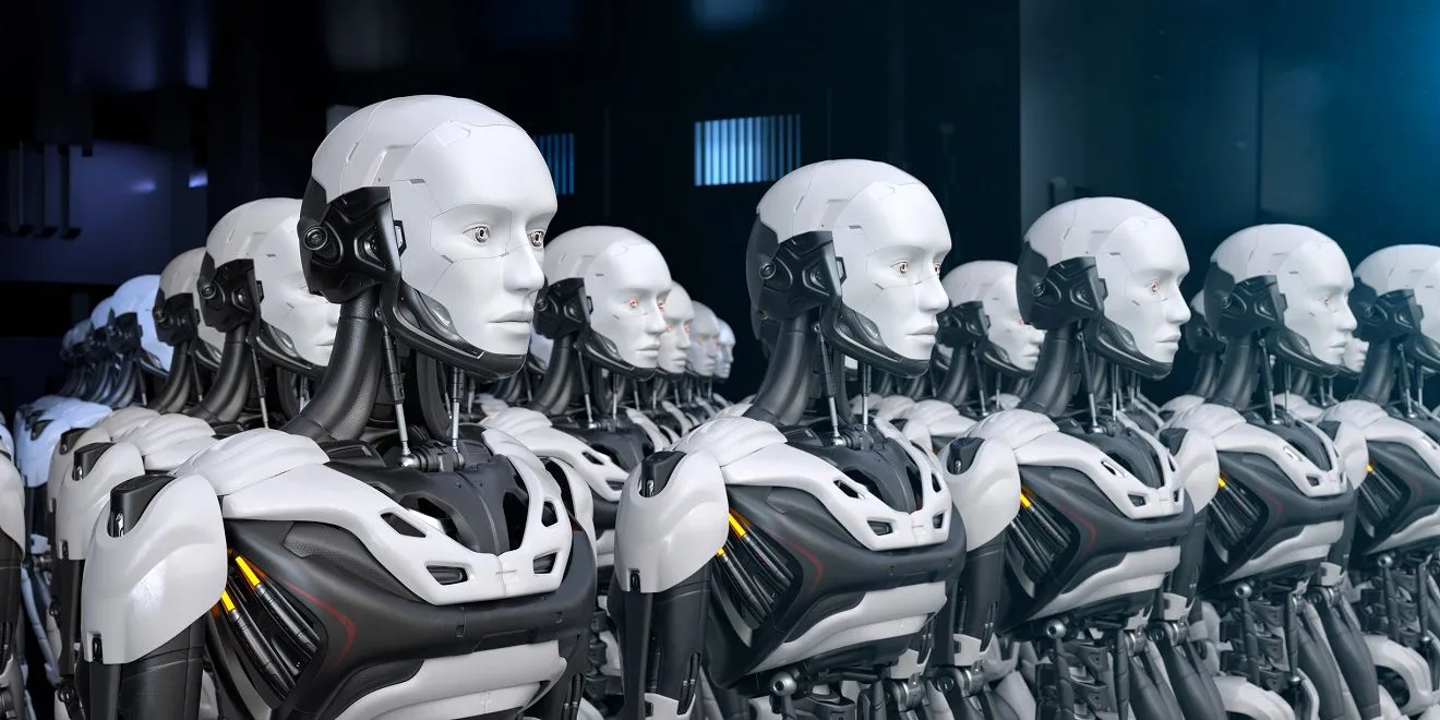 Καθώς ο άνδρας σκύβει από τον πόνο και το ρομπότ, υπάκουο στον προγραμματισμό του, σκύβει κι αυτό, μιμούμενο απόλυτα την αντίδρασή του.